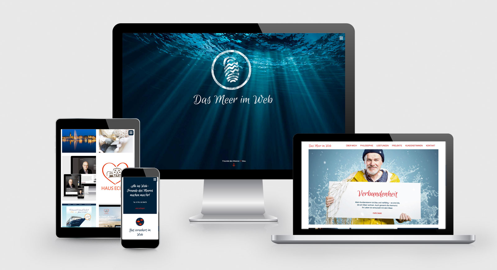 Business-Portfolio für Webdesign & Art Direktion für Kunden vom Meer. Authentische Gestaltung im Netz für Mee/hr-Nachhaltigkeit.