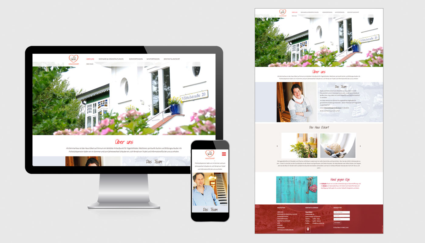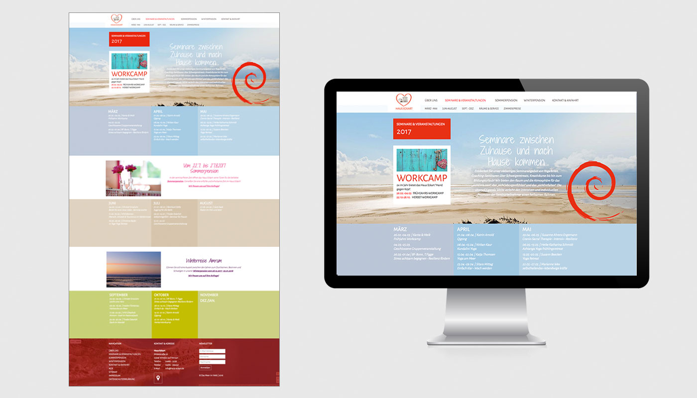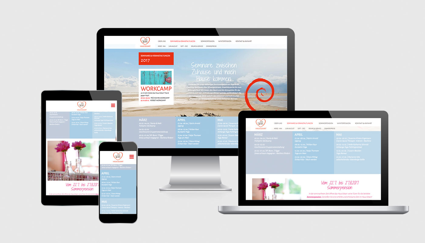 Das Haus Eckart ist ein Seminarhaus, dass in der seminarfreien Zeit im Sommer und Winter seine Türen für Pensionsgäste öffnet. Die Aufgabe war sowohl den Seminarbetrieb mit einem Veranstaltungskalender und Seminarbeschreibungen als auch den Pensionsbetrieb zielgruppengerecht und benutzerfreundlich auf der Website zu kommunizieren.